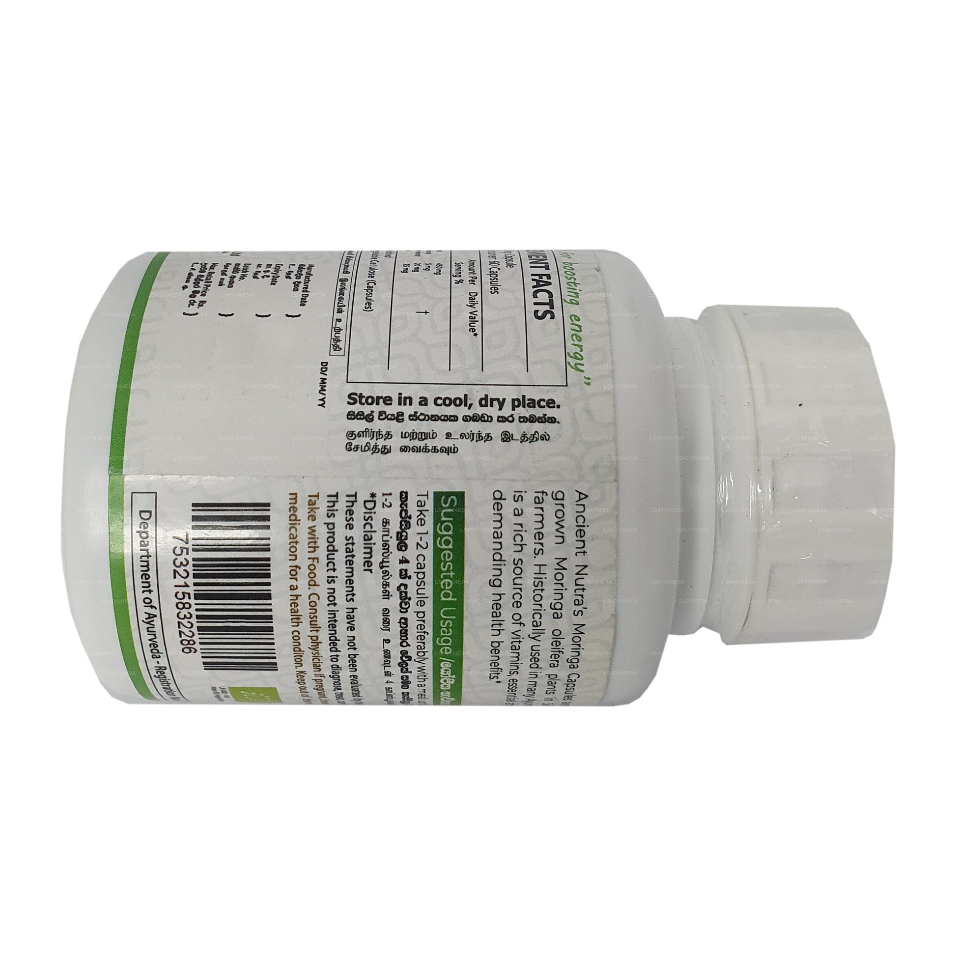 Discover the power of Ancient Nutra Moringa with 60 capsules of nature's vitality. Packed with ancient wisdom, each capsule is a potent source of nutrient-rich Moringa, known for its holistic wellness benefits. Unleash a journey to enhanced energy, immune support, and rejuvenation. Elevate your wellness routine with Ancient Nutra Moringa's 60 capsules – a timeless gift from the past for your well-being today.