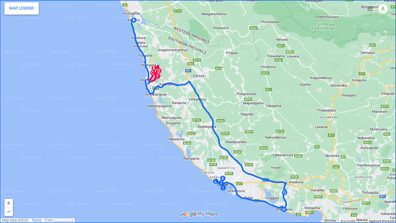 Balapitiya, Handunugoda and Galle from Bentota