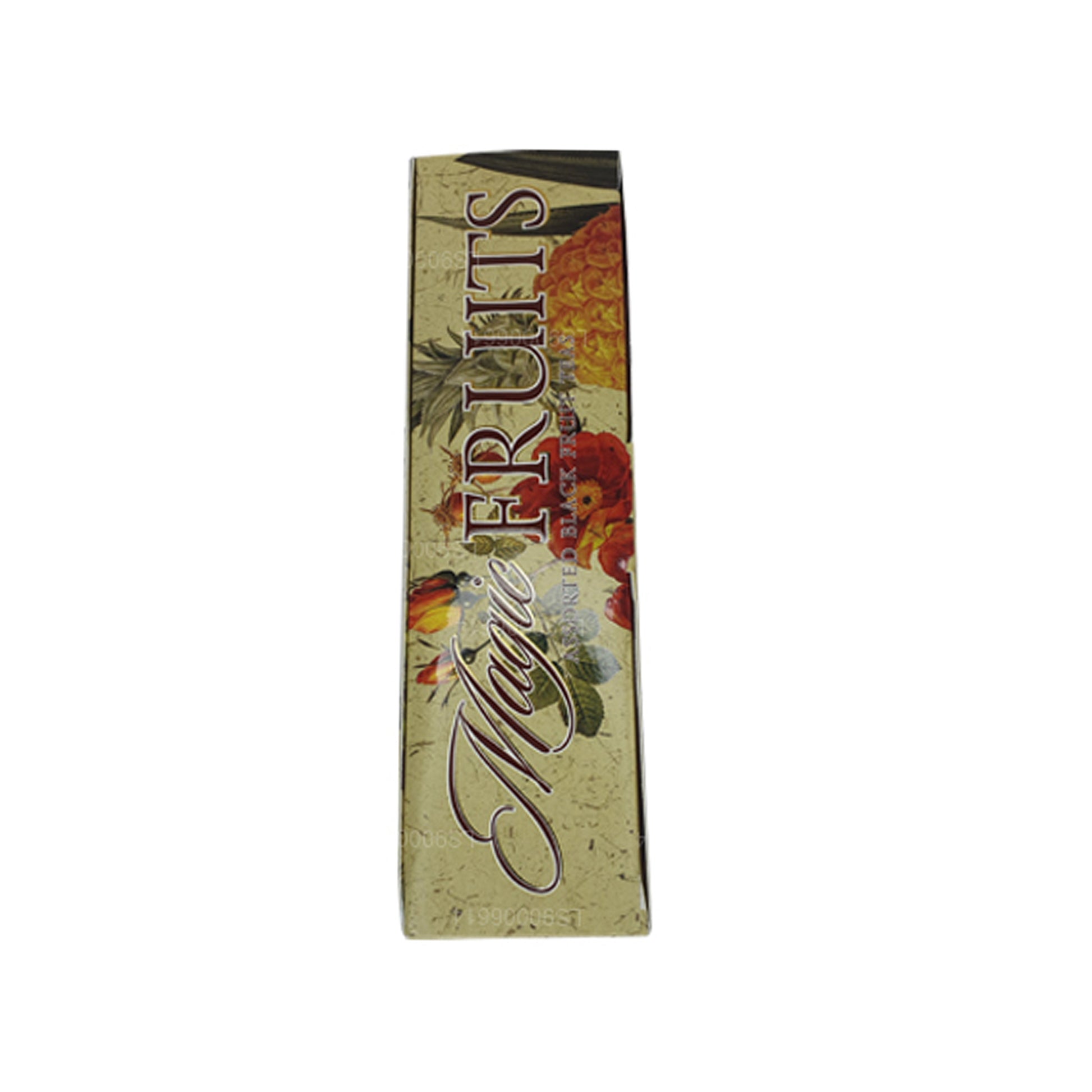 Exchanging fruits and beverages as gifts has been a tradition around the world since medieval times. It has evolved in today's world in a more distinctively creative manner where we present beautifully packaged food and beverage items as gifts for all occasions. Basilur's Magic Fruits Assorted gift pack personifies this ancient tradition in a more versatile and a luxurious manner with some of the finest teas on earth, blended with exotic fruits, encased in beautiful packaging. A symbol of prosperity, unity and warmth wrapped in one exquisite box of pure goodness. 10 Foil enveloped tea bags x 4 types of fruit flavored teas packed into a cardboard box.