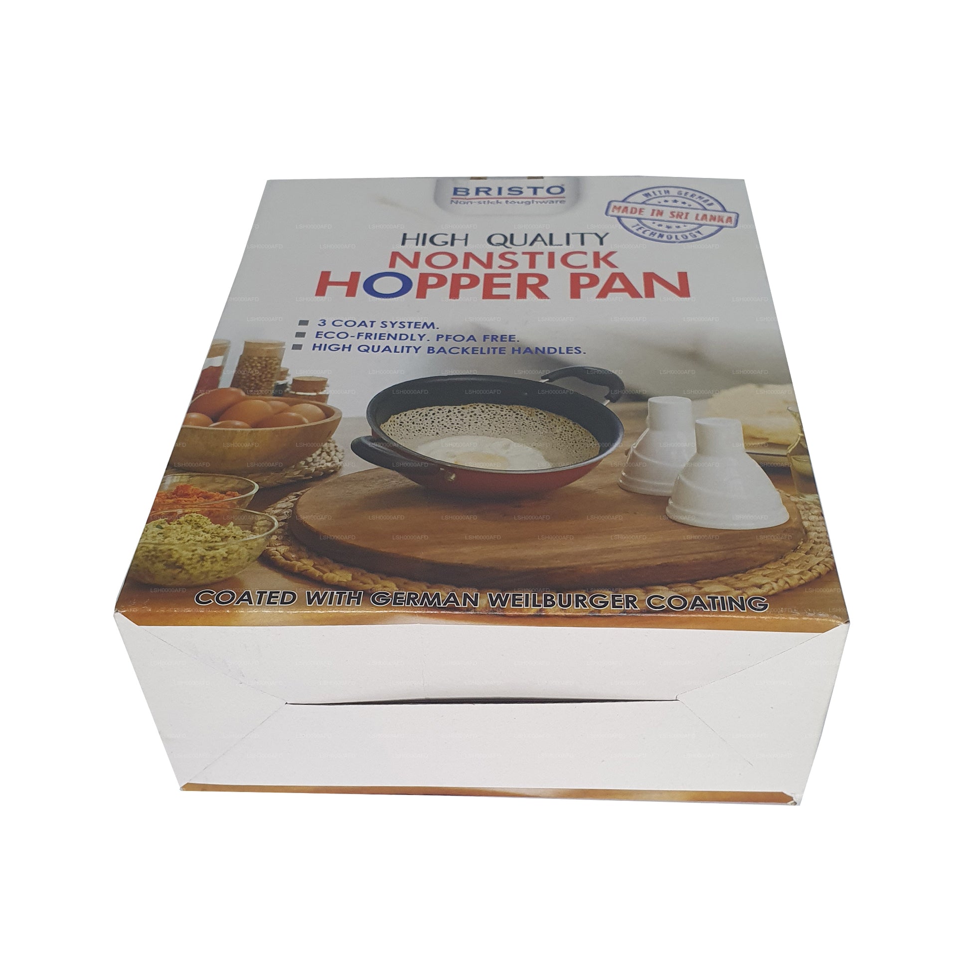 (SKU: LSH0000AFD) La padella antiaderente Bristo Hopper Pan è una padella di 18 cm (7 pollici) di diametro progettata per preparare le tradizionali tramogge o appam dell'India meridionale. La sua struttura resistente garantisce una distribuzione uniforme del calore e la superficie antiaderente consente una cottura più sana e una facile pulizia. I lati poco profondi e curvi aiutano a creare tramogge dalla forma perfetta con uno strato esterno croccante e un centro soffice. Il comodo manico della padella garantisce un uso sicuro e comodo. Versatile e facile da usare, è uno strumento essenziale per preparare deliziose tramogge e altre prelibatezze come frittelle e