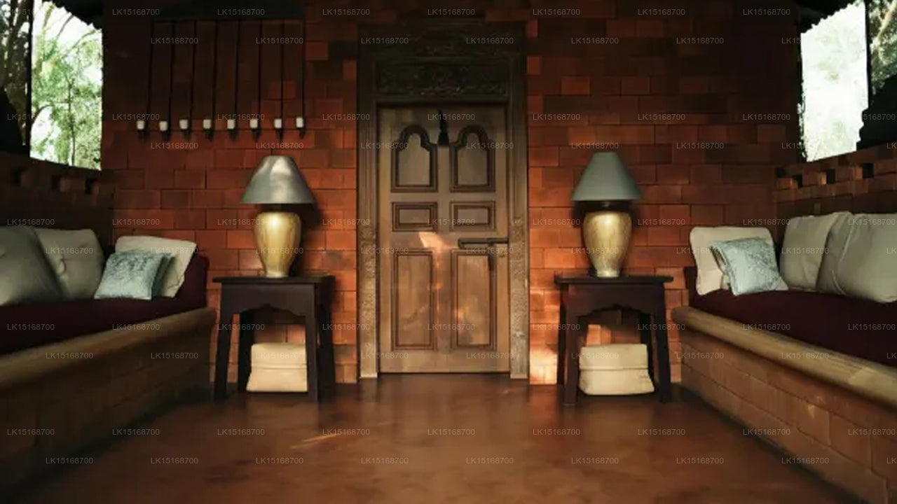 The hotel features individually designed pavilions, each with unique themes reflecting traditional Sri Lankan architecture and décor. Every pavilion includes modern amenities, such as air conditioning, en-suite bathrooms, free Wi-Fi, and private terraces with garden views. The serene atmosphere and artistic interiors create a perfect environment for guests to unwind.