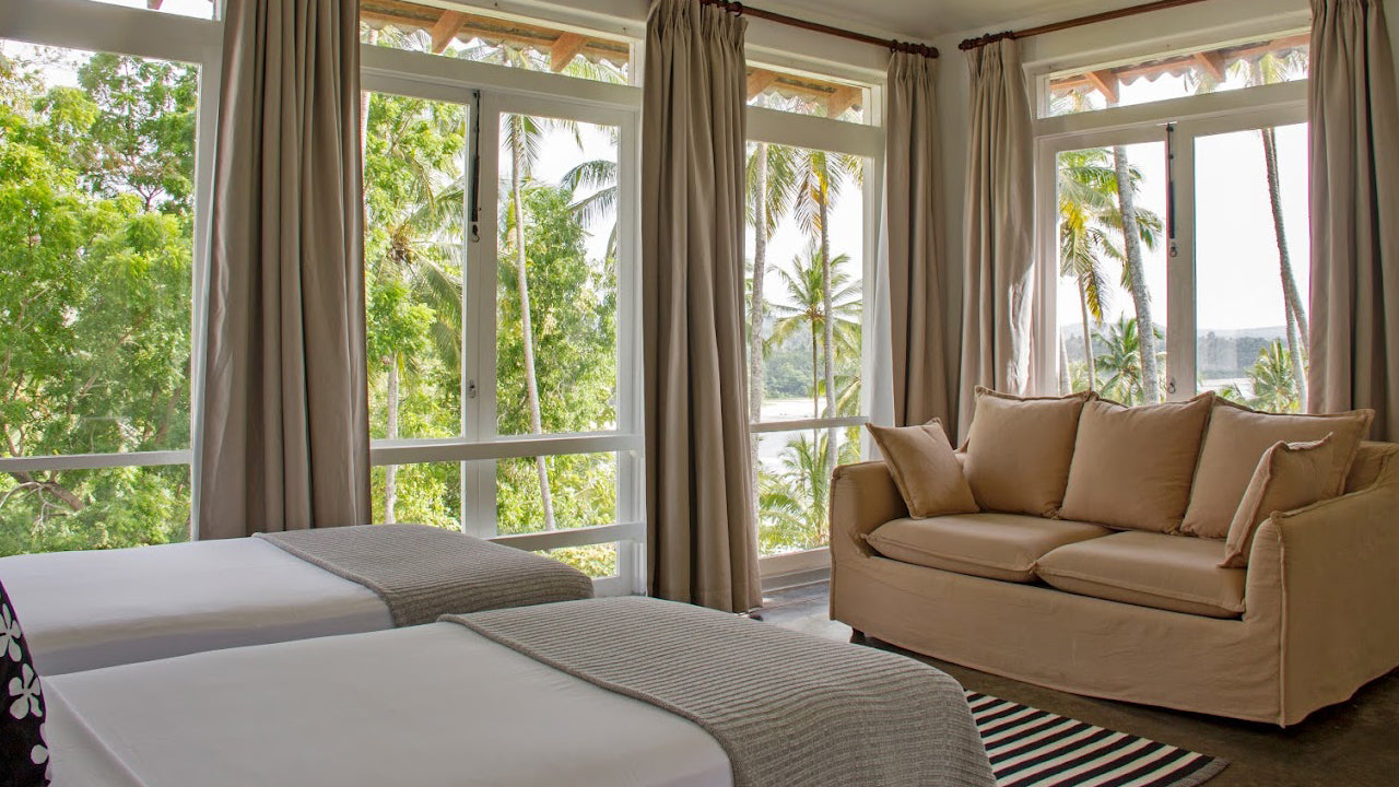 Accommodation:Claughton House features five luxurious, air-conditioned en-suite bedrooms, including one that doubles as a games/TV room with two single beds. Designed by Geoffrey Bawa, the villa seamlessly blends modern elegance with natural surroundings. Spacious living and dining areas, along with private terraces, create a sophisticated yet homely atmosphere, ideal for families or groups.