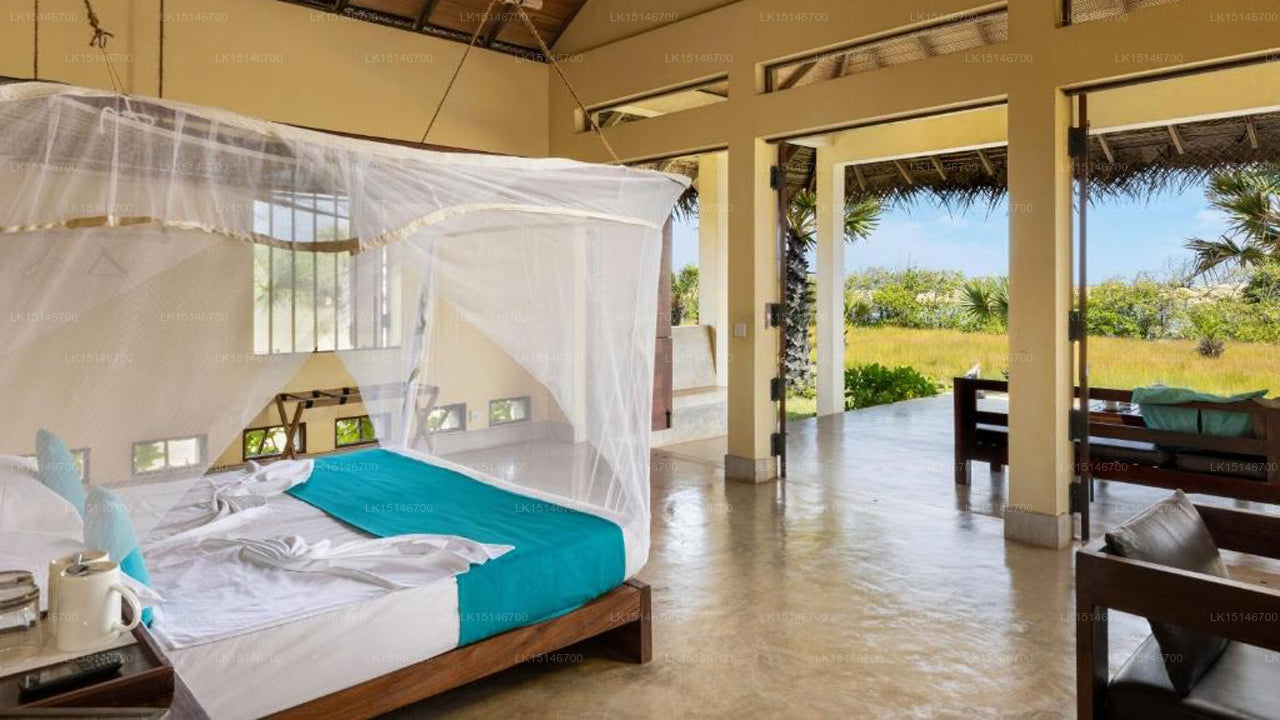Located in Kappalady, Kalpitiya, the resort spans 22 acres of private beachfront along the Indian Ocean and Kappalady Lagoon. The area is renowned for its consistent winds, making it a prime destination for kitesurfing and wing foiling. The resort is approximately 30 km from Palawi Junction Railway Station and a 2.5-hour drive from Bandaranaike International Airport.