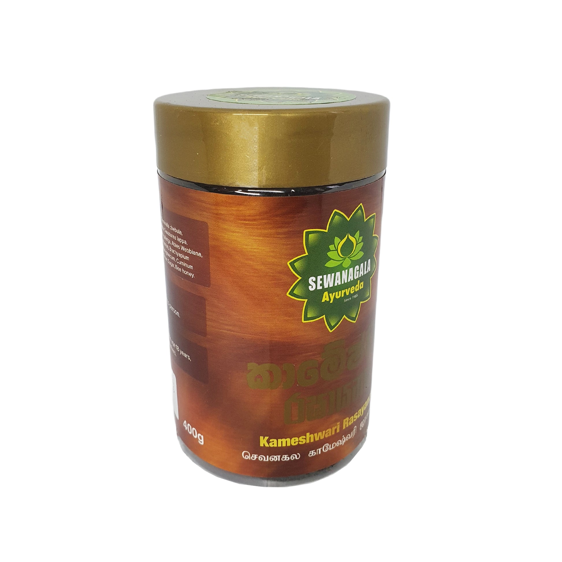 Sewanagala Kameshwari Rasayana (Esportare) è una miscela di erbe tradizionale realizzata per migliorare l'aspetto esteriore, supportare la salute riproduttiva e promuovere il benessere generale. Quando assunta regolarmente, favorisce un'atmosfera romantica ed edificante, calma la mente e rigenera la vitalità.