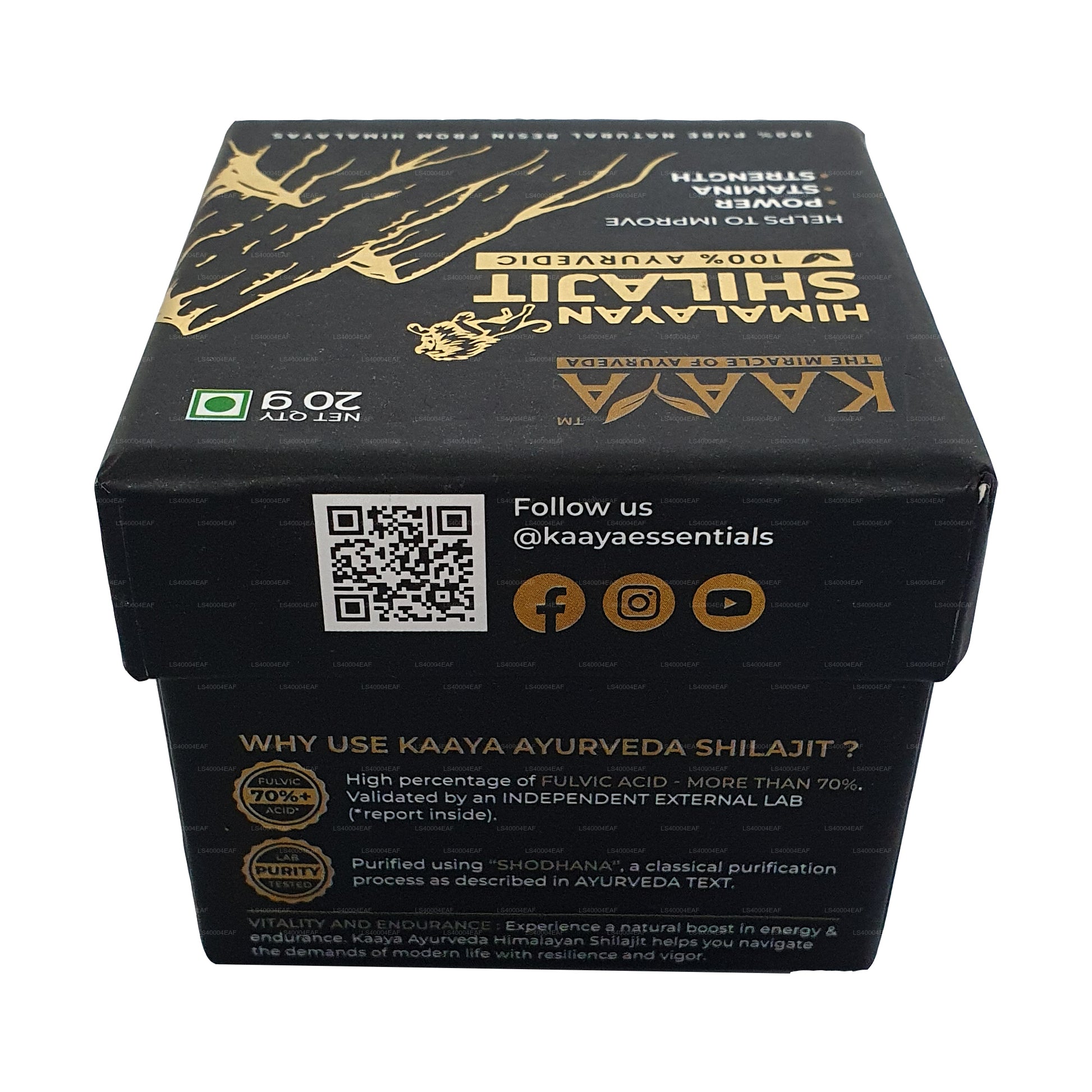 Kaaya Himalayan Shilajit is a premium, all-natural resin sourced from the pristine heights of the Himalayas, known for its potent health benefits and vitality-boosting properties. Each 20g jar contains pure Shilajit, a mineral-rich resin prized in traditional wellness practices for enhancing energy, stamina, and mental clarity. With a naturally earthy flavor, Kaaya Shilajit is packed with fulvic acid and essential minerals, supporting overall wellness, balanced energy, and immune health. Ideal for those seeking a natural way to rejuvenate body and mind, Kaaya Himalayan Shilajit brings ancient, powerful wellness to modern lifestyles.