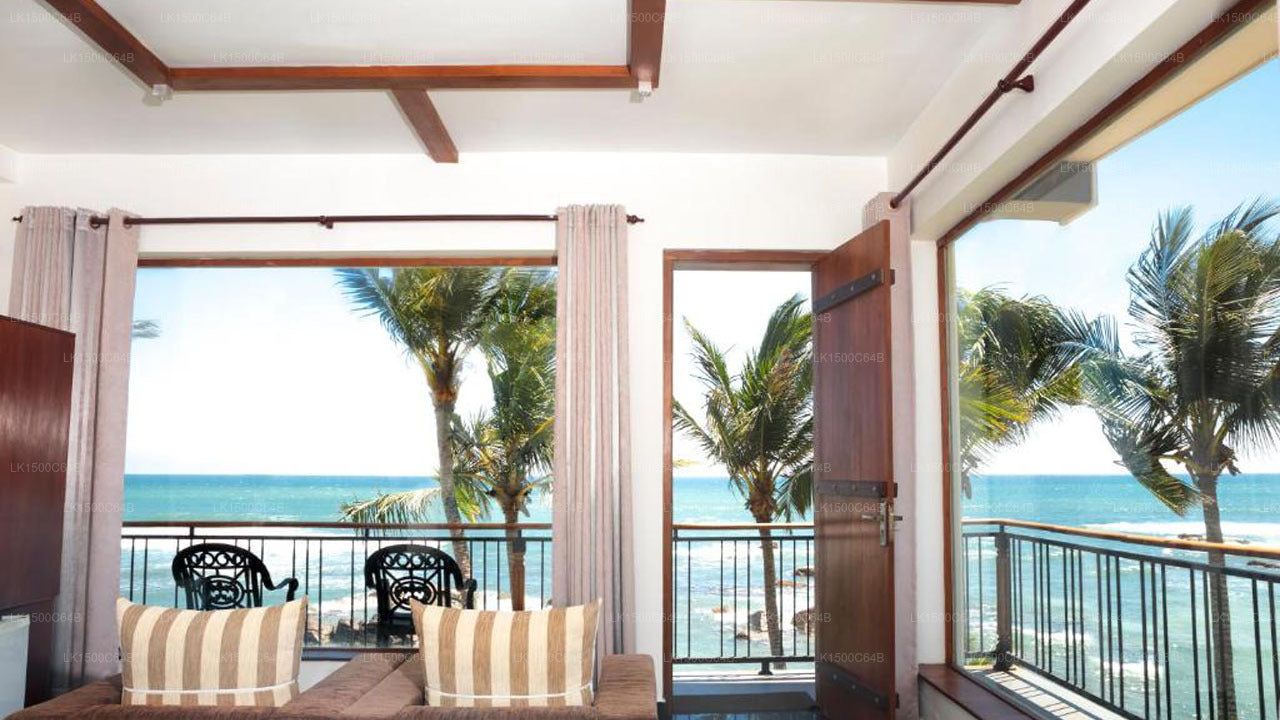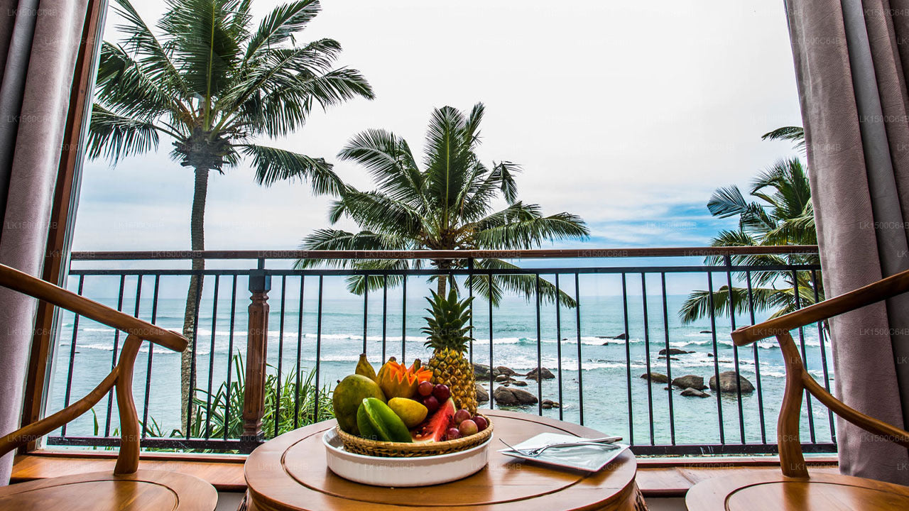 (SKU: LK1500C64B) Lakraj Heritage, an exquisite boutique hotel in Matara, Sri Lanka, nestled on the pristine shores of the unpolluted Sea of Dondra Head. This idyllic location offers unparalleled views of both sunrise and sunset over the Indian Ocean. The natural Seawater pool, with its unique filtration system and organic rock boulder surroundings, adds to the hotel's natural charm, allowing guests to immerse themselves in vibrant marine life.