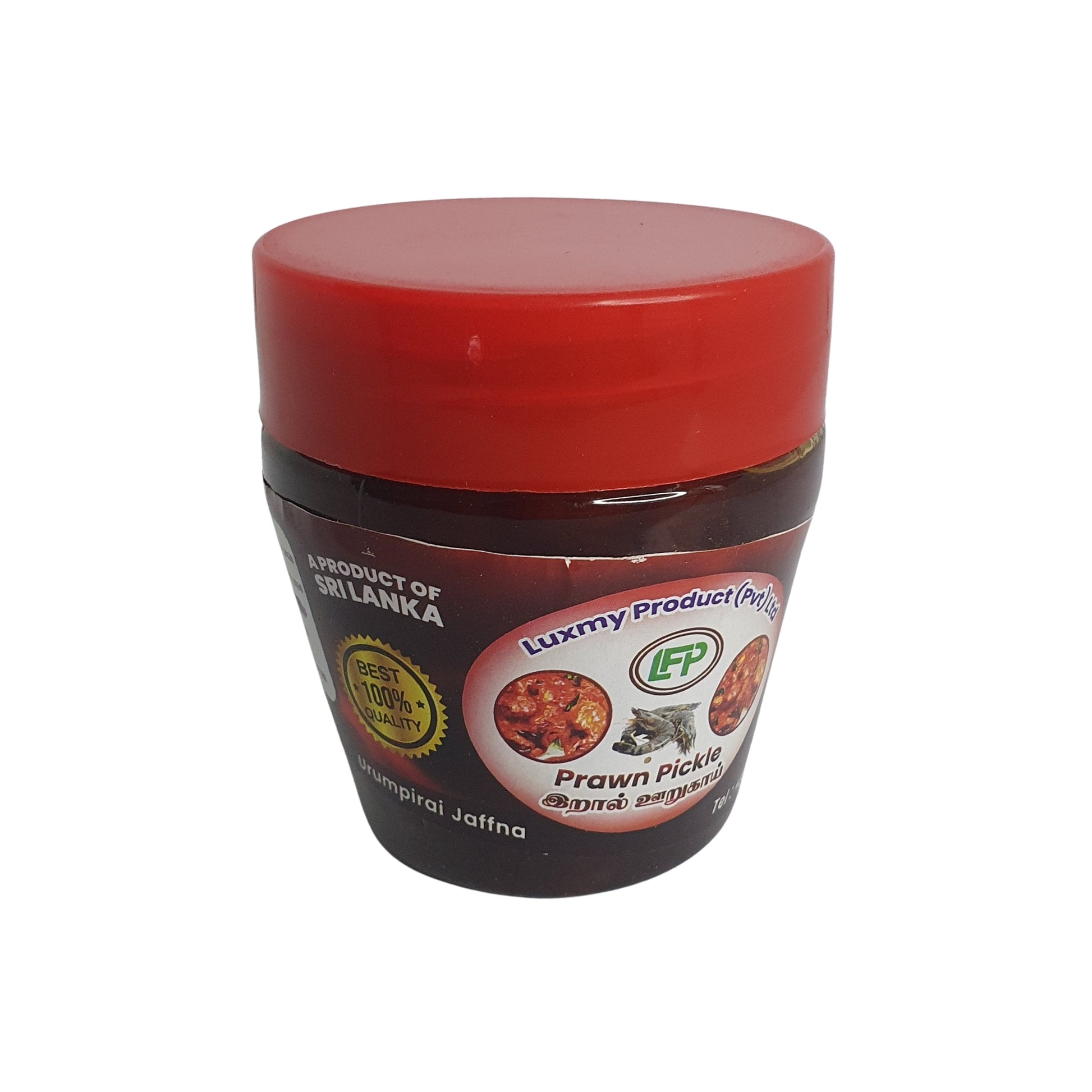 Luxmy Prawn Pickle is a rich and spicy Sri Lankan seafood preserve made using succulent prawns blended with traditional spices and aromatic ingredients. This pickle is prepared by cooking prawns with chilli, garlic, ginger, curry leaves, and a variety of spices in coconut oil, then preserved with vinegar to create a bold, tangy, and deeply flavorful condiment. The combination of heat, acidity, and savory seafood flavor gives the pickle its distinctive taste that complements many Sri Lankan meals.