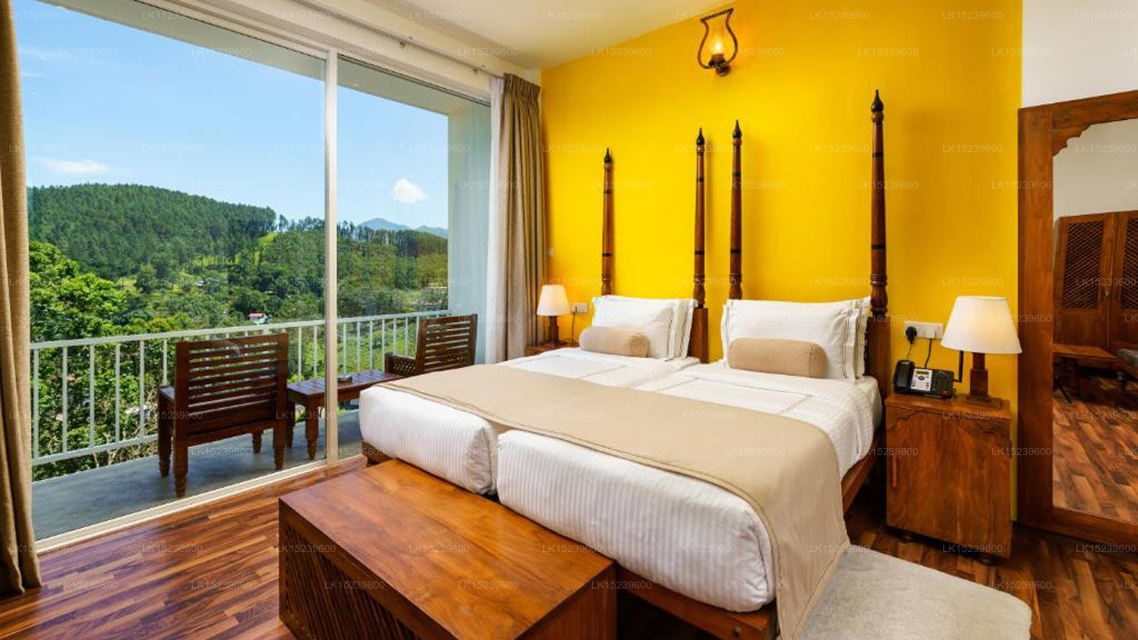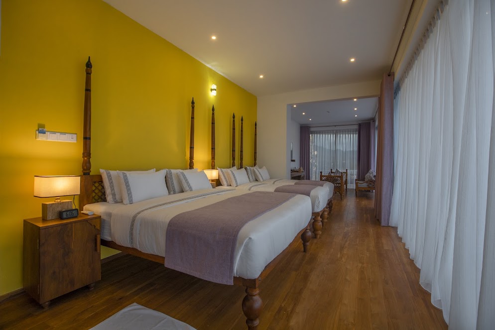 The hotel features elegantly designed rooms and suites with modern amenities and stylish interiors. Each room includes plush bedding, en-suite bathrooms, and private balconies offering panoramic views of the surrounding hills and valleys, ensuring a luxurious and tranquil stay.