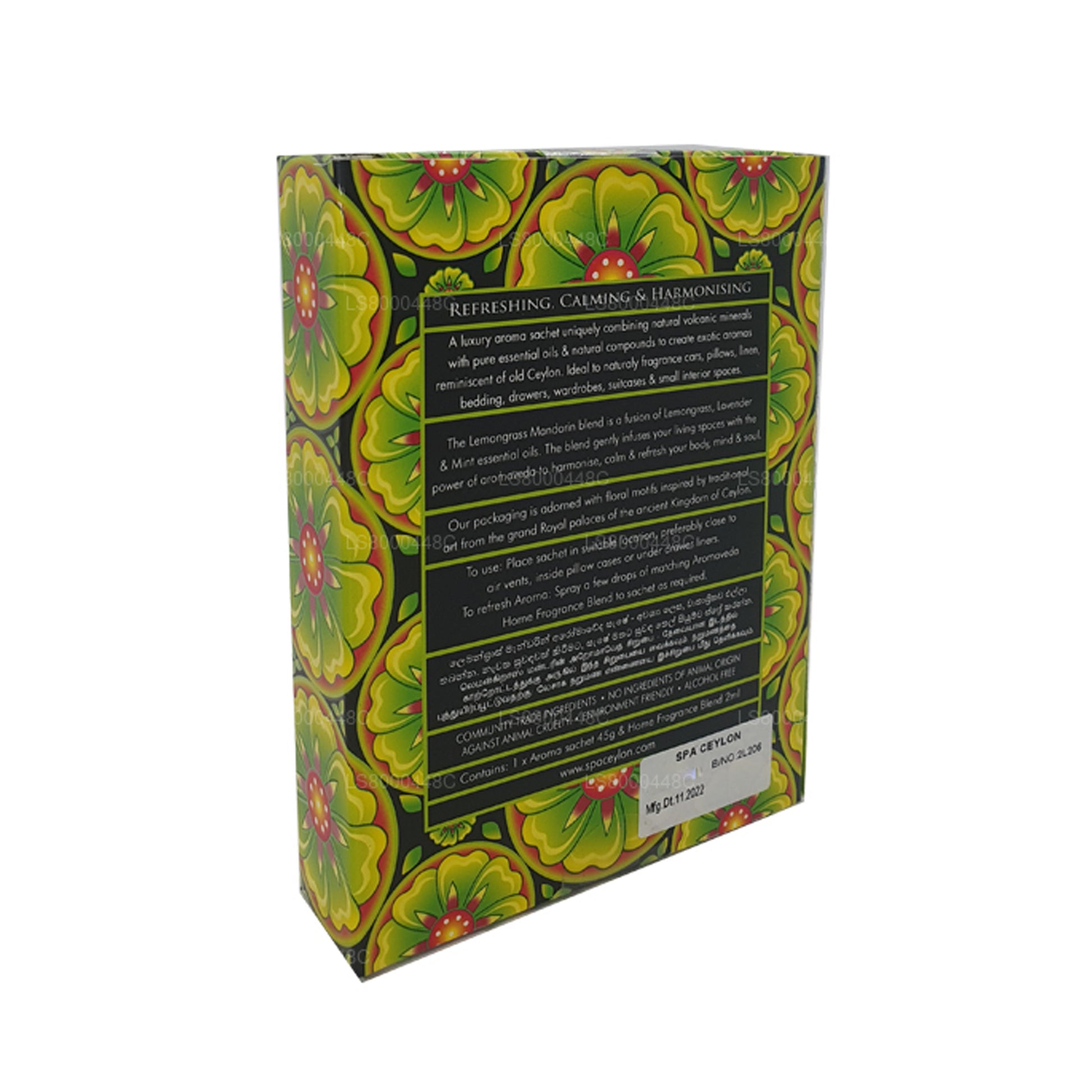 Our packaging is adorned with floral motifs inspired by traditional art from the grand Royal palaces of the ancient Kingdom of Ceylon.