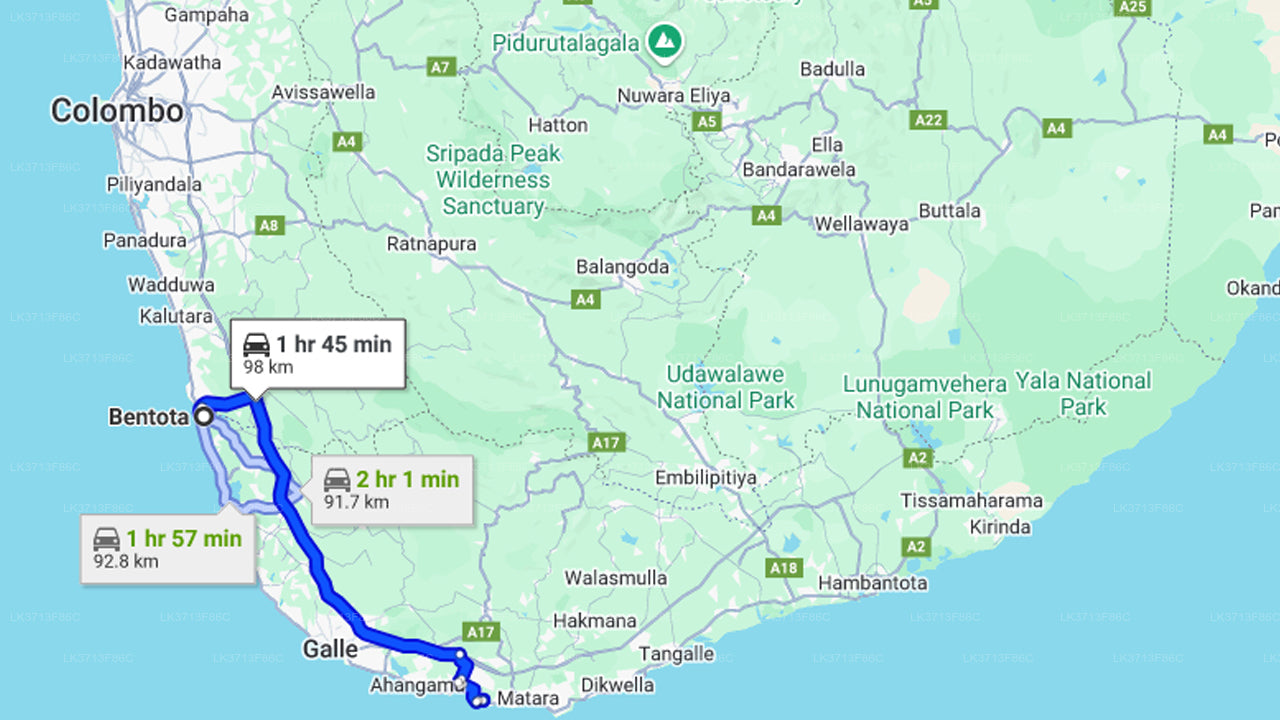 Bentota City to Udawalawe City Private Transfer